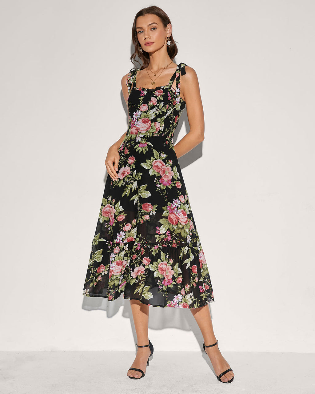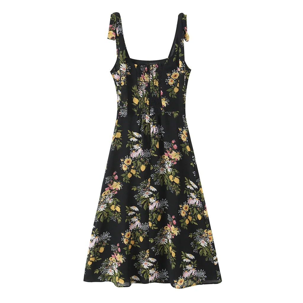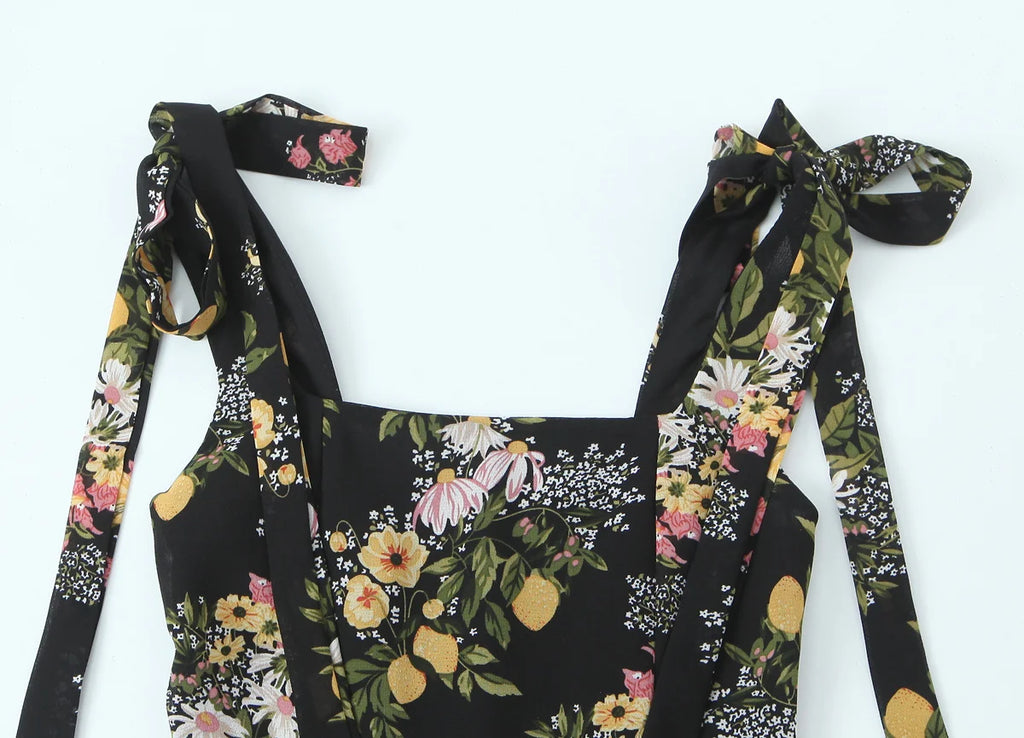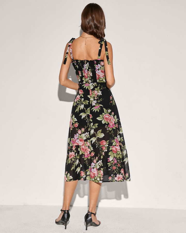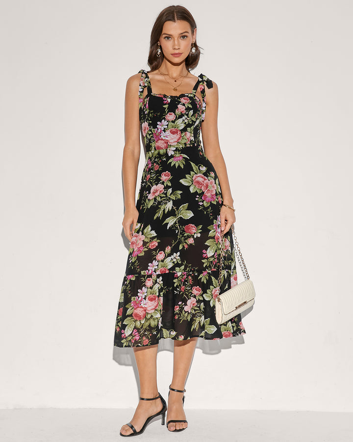 Floral Tie Strap Square Neck Maxi Dress