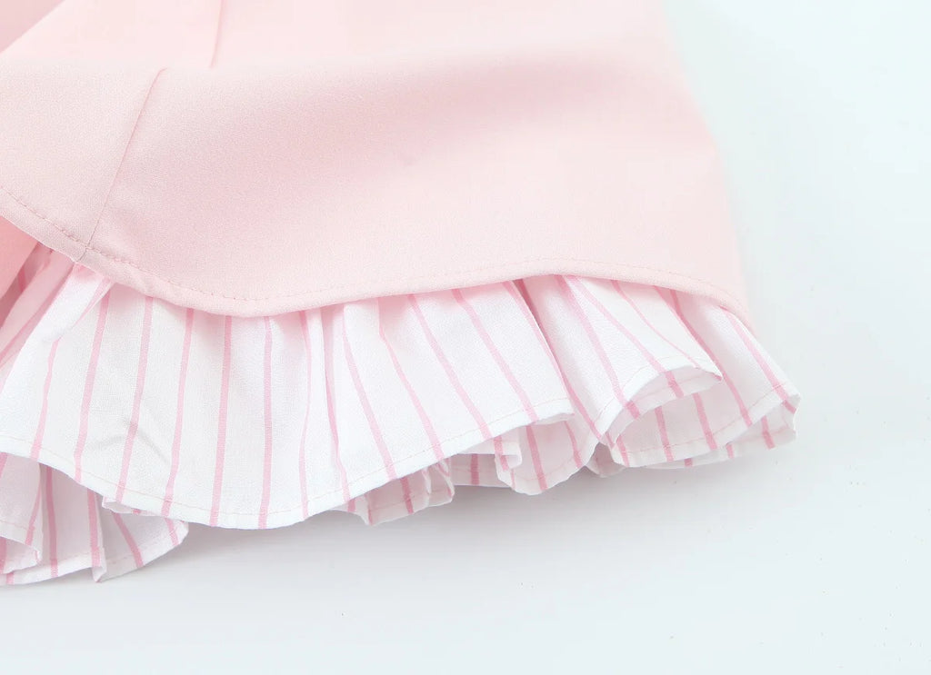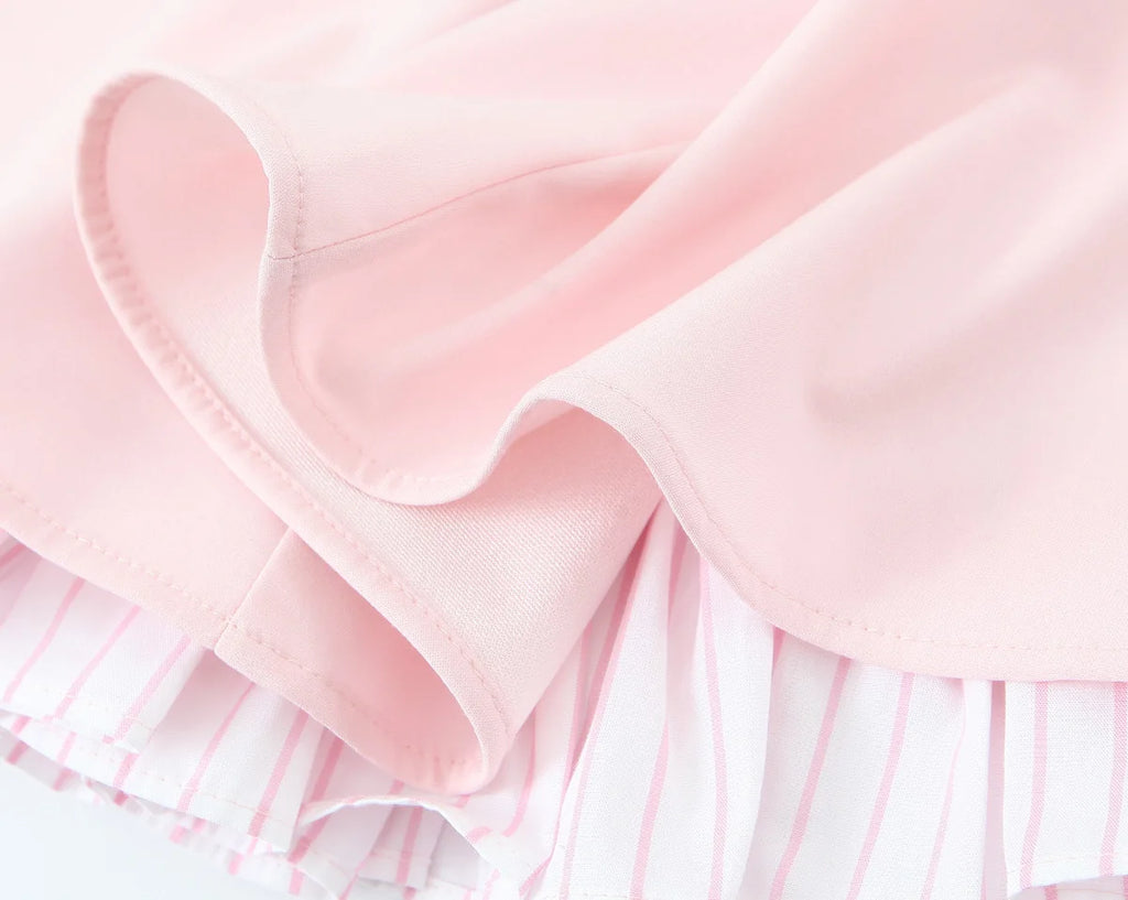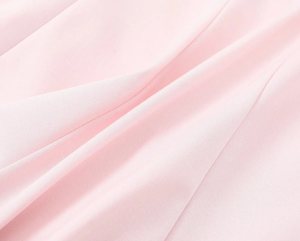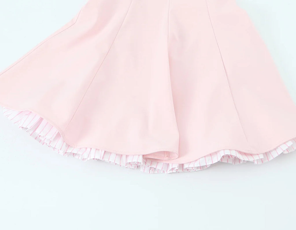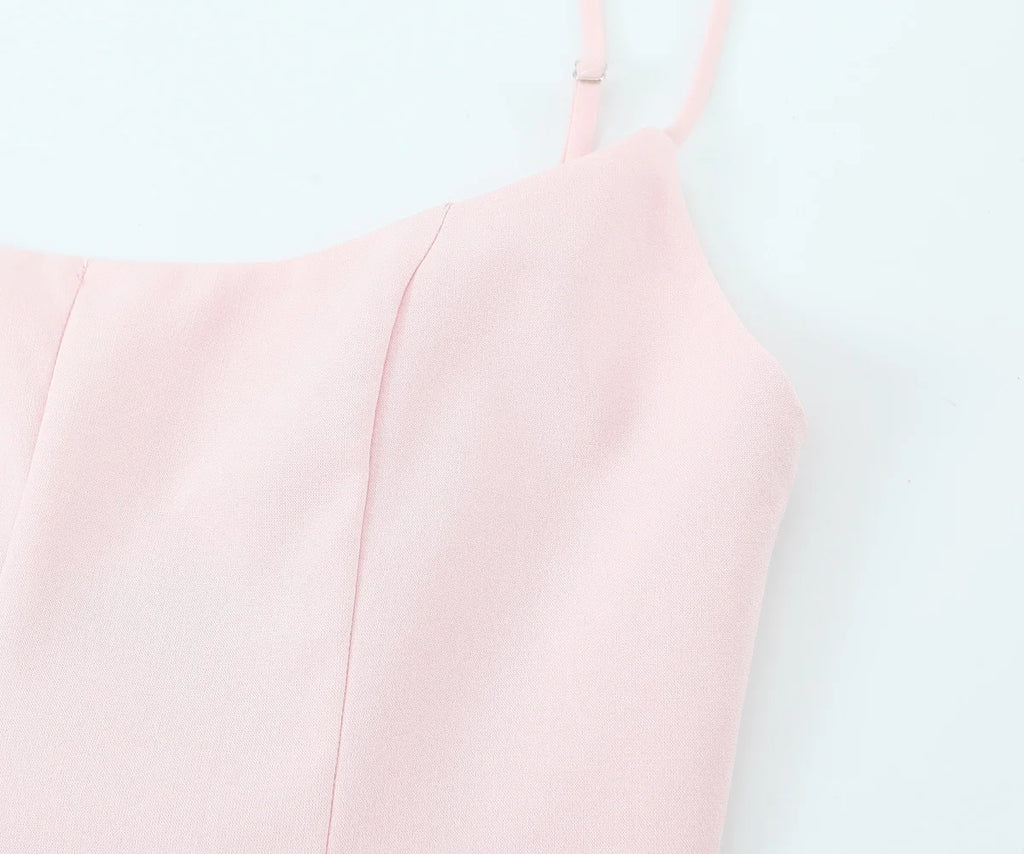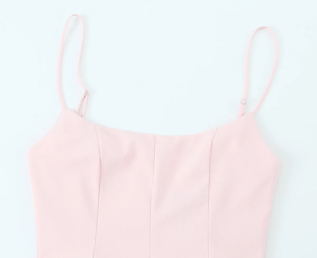 A delicate mini dress with thin spaghetti straps and a softly flared skirt, designed to accentuate the waist and create a light, feminine silhouette.
